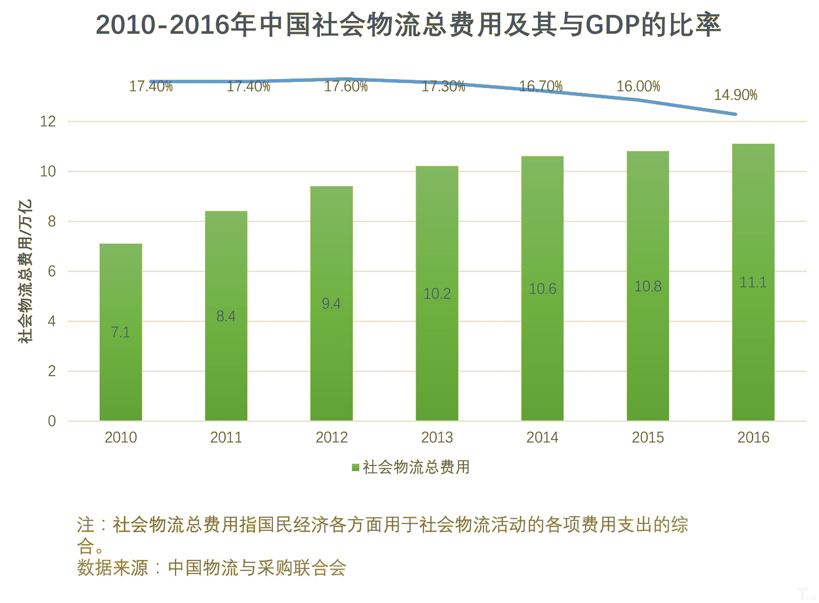 中國社會物流費用與GDP比率