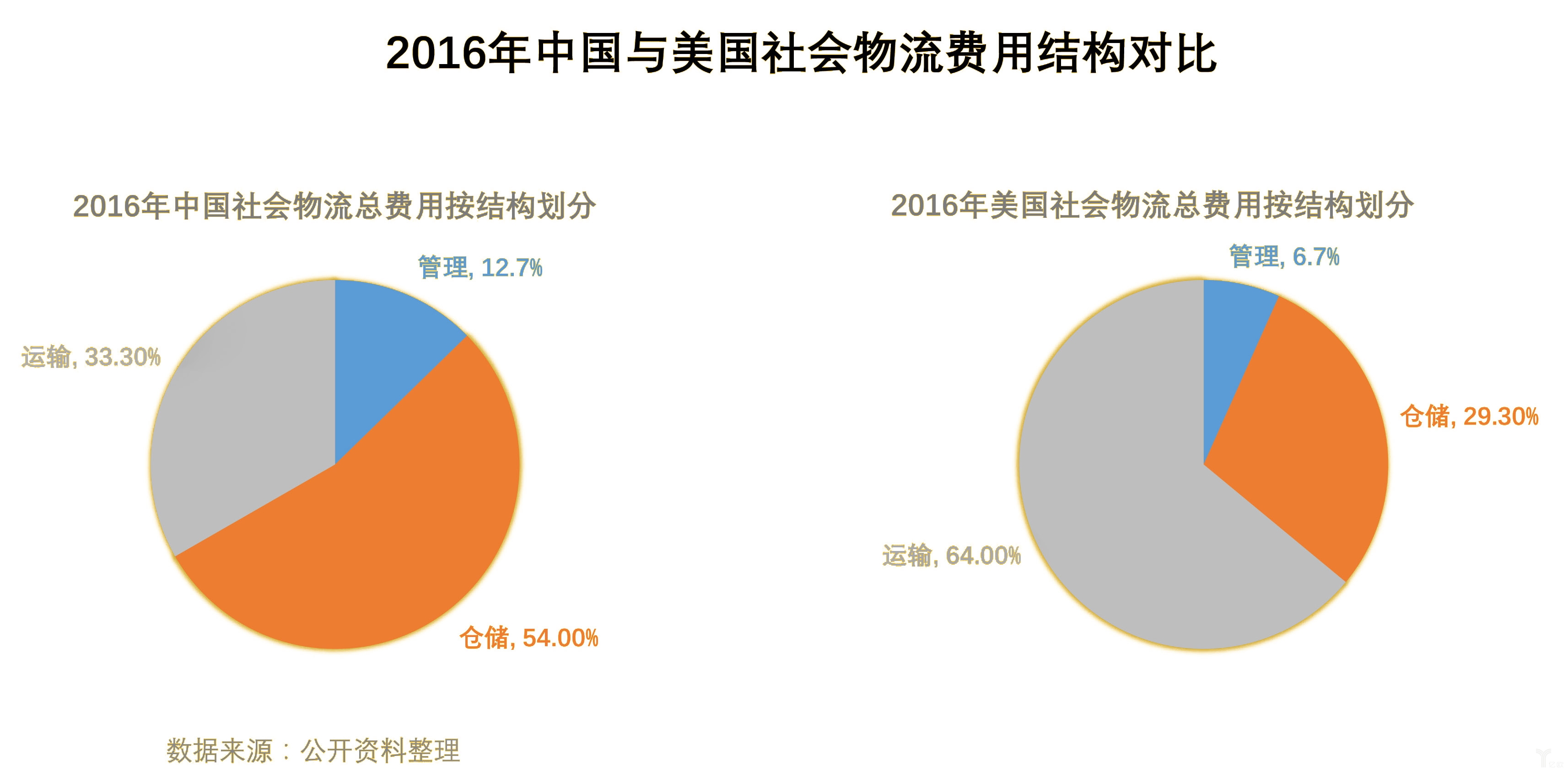 2016年中國與美國社會物流費用結構對比